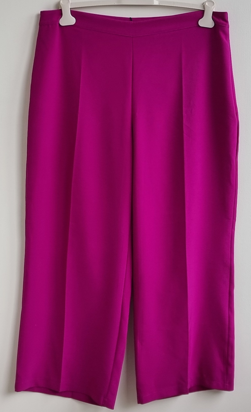 Helemaal nieuw met kaartjes is deze broek met brede wijde pijpen en ritssluiting aan de zijkant. Lengte 107 cm., binnenbeenlengte 75,5 cm., taille 50 cm. Materiaal: 91% polyester en 9˜% elastaan.
