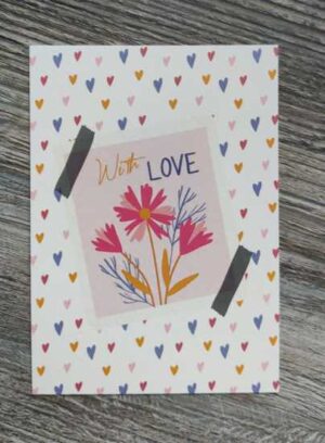 Nieuw schrijfblok met 50 blaadjes die dubbelzijdig bedrukt zijn, vol met liefde.